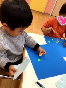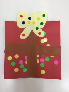 プレゼントに様々な色の丸シールをペタペタ!しました✨