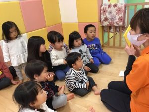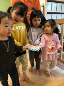 最近保育園に届いた絵本だったので、初めて見る絵本に釘付けの子どもたち?✨