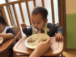 「自分でスプーンで食べられるよ〜✨」