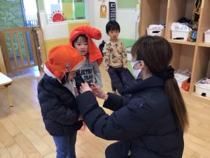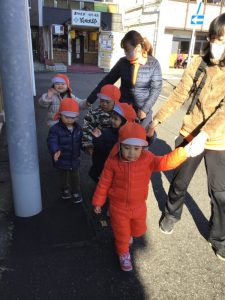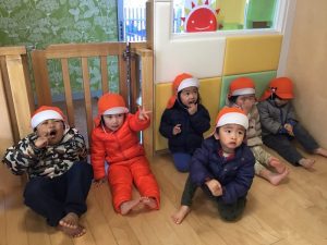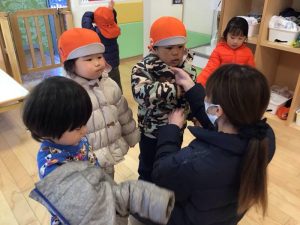 大好きなお散歩に行くために準備をしている子ども達????