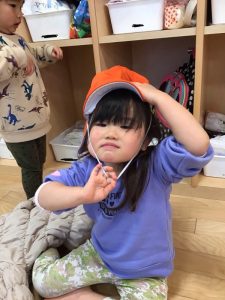 まずは、帽子と上着を準備?