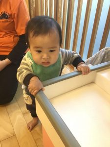 僕はつかまり立ちを頑張ってるよ✊