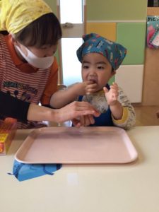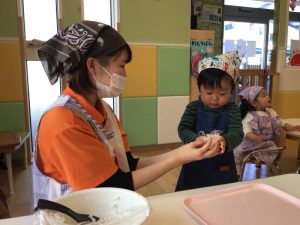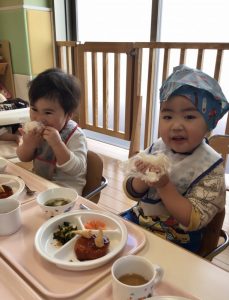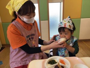 ?「おにぎりくんがね」の絵本を読みながら、おにぎりを握る練習をしましたよ✨