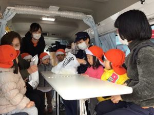 中を見て「わー!すごい?」と周りをキョロキョロ見渡している子どもや、初めての経験にちょっぴり緊張の子ども達????