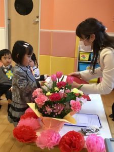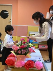 これまで元気に通うことが出来たのは、お父さんお母さんのお陰です。今日までの感謝の気持ちを込めて、お渡ししました✨