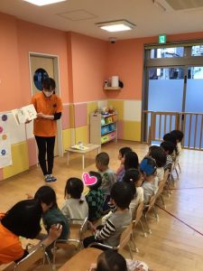 まずは先生による?「まこちゃんのおたんじょうび」の読み聞かせです!