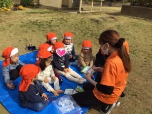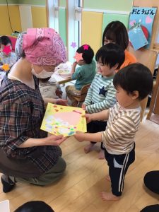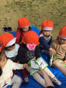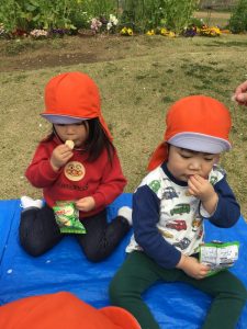 子どもたちもおやつを握りしめ、「おいしいね?」といいながらニコニコ笑顔で食べており先生達も微笑ましい気持ちになりました?
