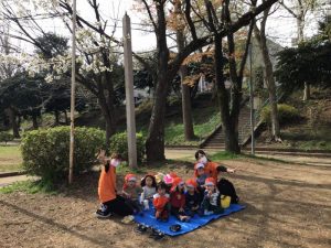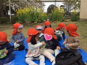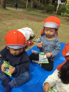 普段は保育園のお部屋で食べるおやつも、お外で食べると新鮮でより美味しく感じます?