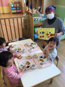 お給食が大好きなみんなは、いい匂いがしてくると、