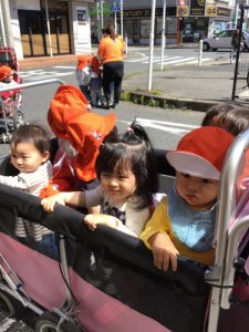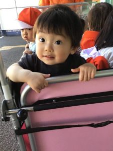 最初は、どこ行くの??と不安そうな表情をして泣いていた子ども達でしたが、お外の楽しさが分かると涙もピタッと止まりニコニコで外の景色を眺めていますよ?