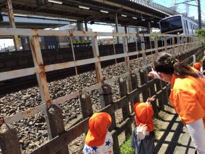 駅前のスペースで電車を見るのも大好きな子ども達?✨