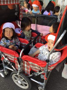 いちご組さんは、立つバギーや座るバギーに乗ってお散歩を楽しんでいます❗️