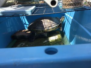 「やっほー」とカメさんも手足をバタバタ