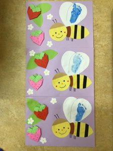 可愛いみんなの足型でハチさんの羽のできあがりです??