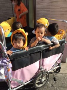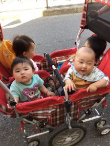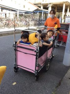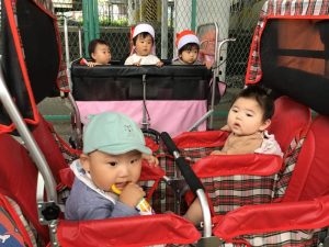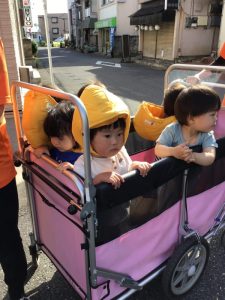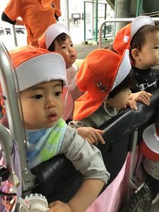 いちご組さん?もも組さん?もバギーに乗って上手に避難できましたね?