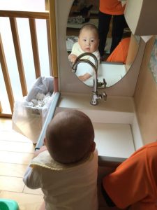 鏡に興味津々です?
