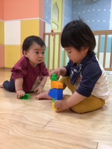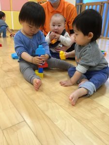 ブロック遊びが大好きなお友達が多く、並べてはくずしてと楽しんでいます?