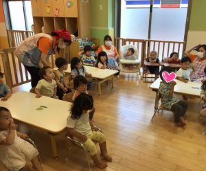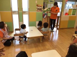 この日は、もも組のお友達の絵本を借りて読み聞かせをしましたよ