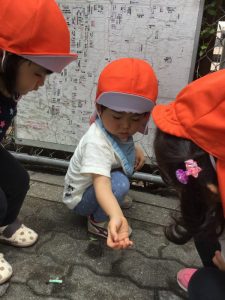 ダンゴムシいたよ〜❗️腕に乗せていたらみんなが集まってきたね☺️⭐️