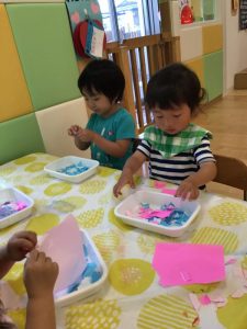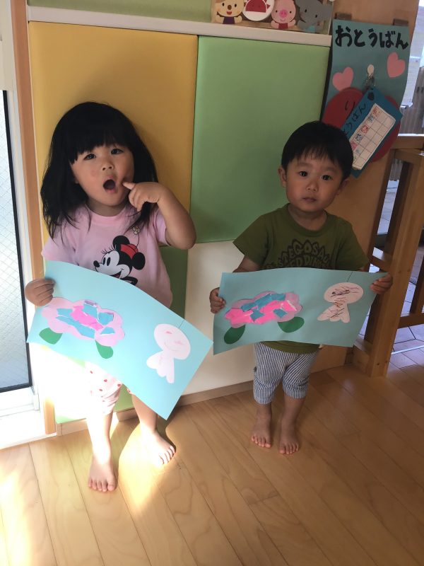 ✋折り紙をビリビリちぎって、ペタペタのりで貼りました✨