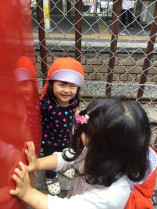 戸外遊びから帰ってくると子ども達の額には汗がじんわり?