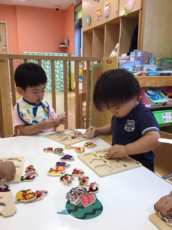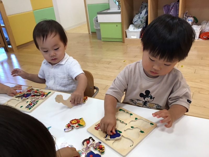 この日は、先生と一緒にここかな❔違うね?ここはどうかな❔と会話を楽しみながら、パズルを楽しみました☺️
