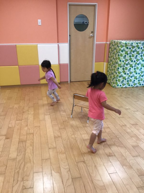 どんどんお友達減っていきますがみんな音楽が止まると一生懸命椅子に座ろうとしていますよ??