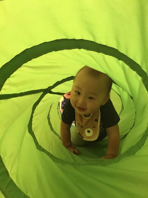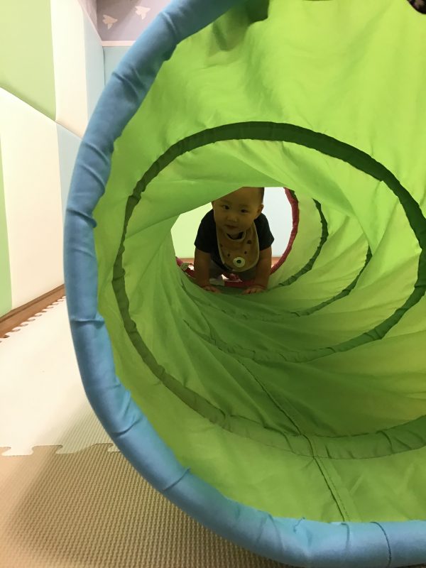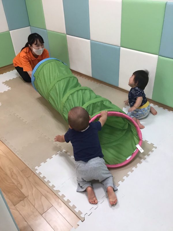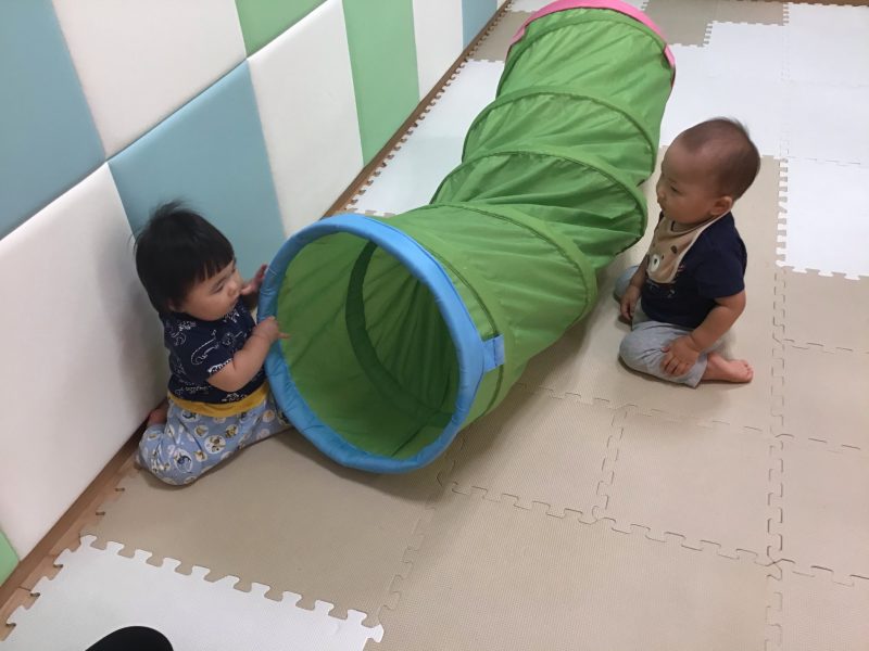 トンネルに入ってきてくれる子もいれば、入らず外から先生のところに来てくれる子もいて、一人ひとり反応が違ってとっても可愛いです☺️❤️