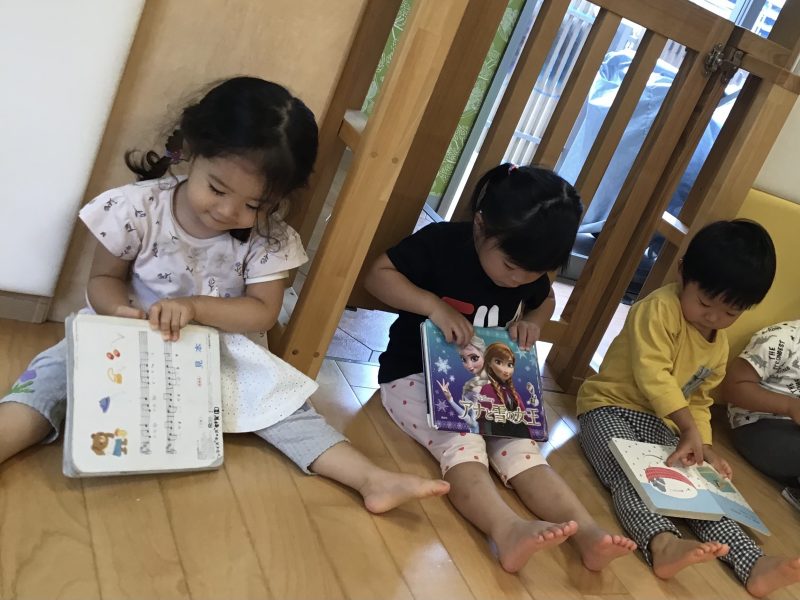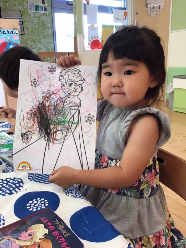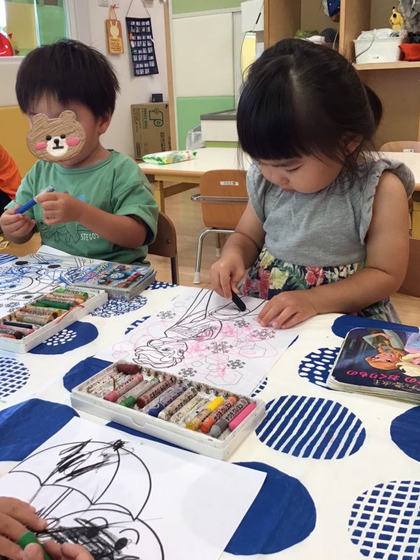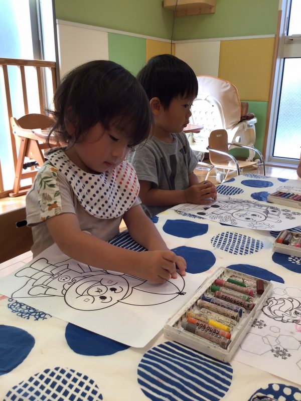 自分で考えながら塗り絵するお友達もいれば、絵本見て同じ色を探そうとするお友達もいて、毎回発見がいっぱいです!