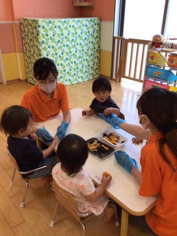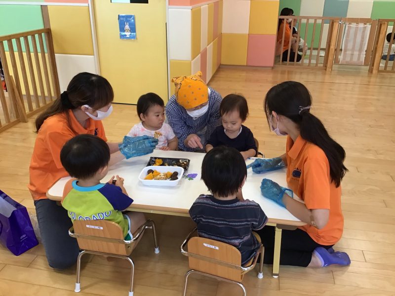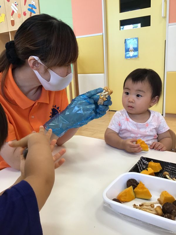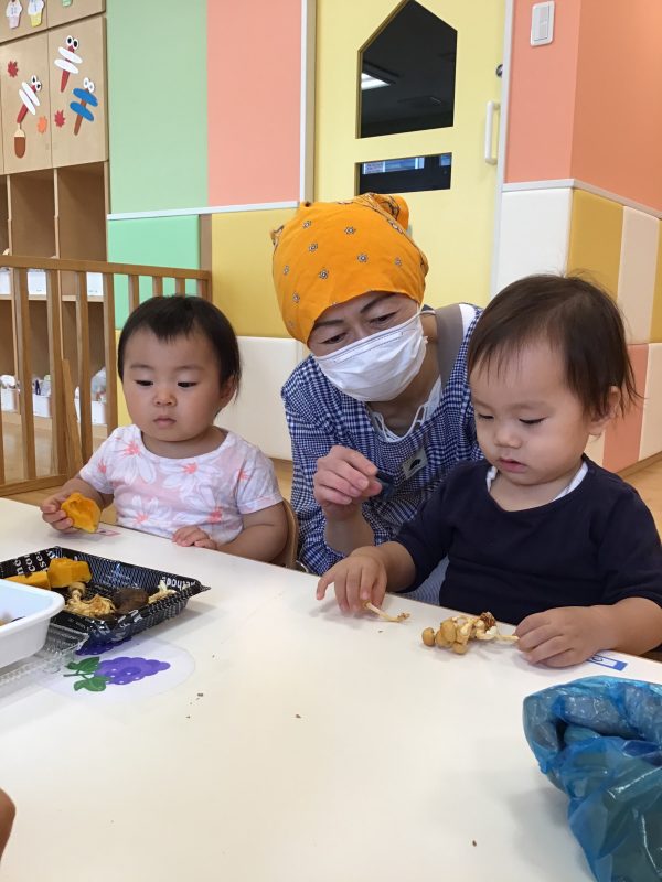 いちご組さんは今回「秋の食材に触れる?」というテーマで活動を行いましたよ?