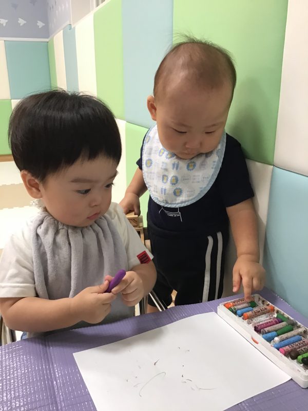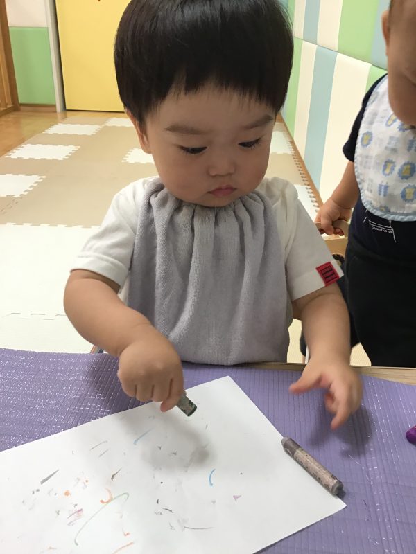 クレヨンをにぎって、紙の上で滑らせると色が紙につく✨驚きと発見が沢山のお絵描きをまた楽しみたいと思います?