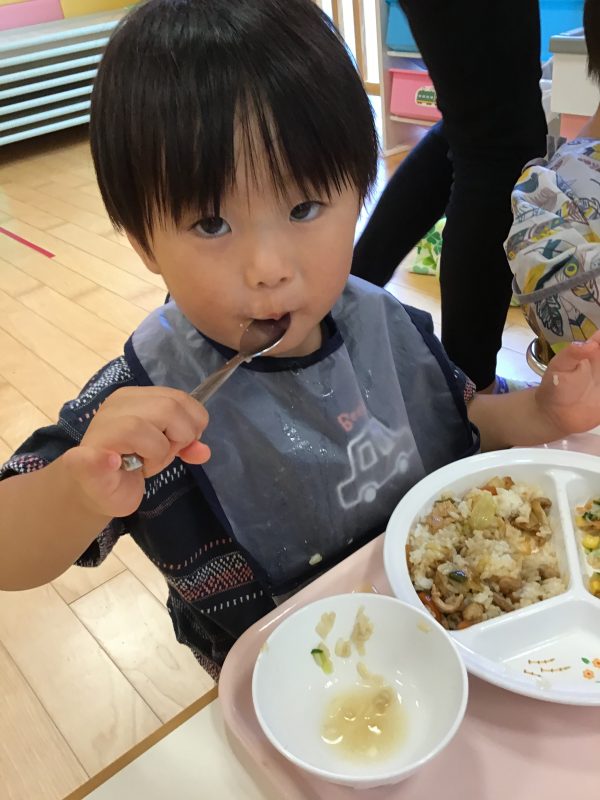 お給食中、みんなあったかな⁉️と聞いてみた時には、なめこのお味噌汁のなめこはお腹に入っていました?