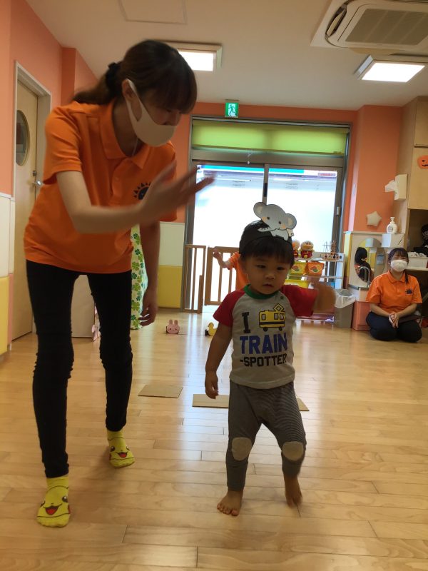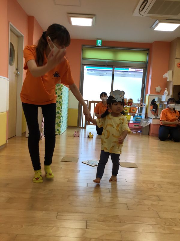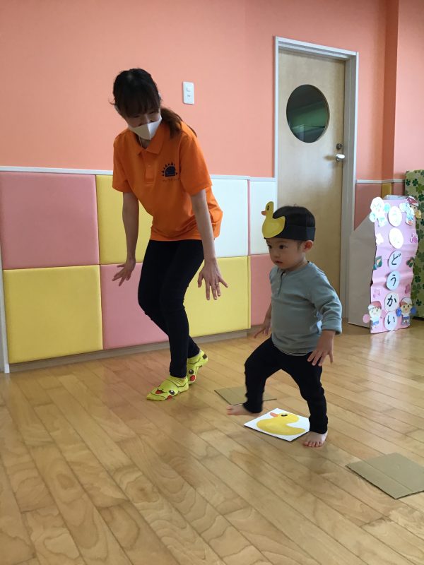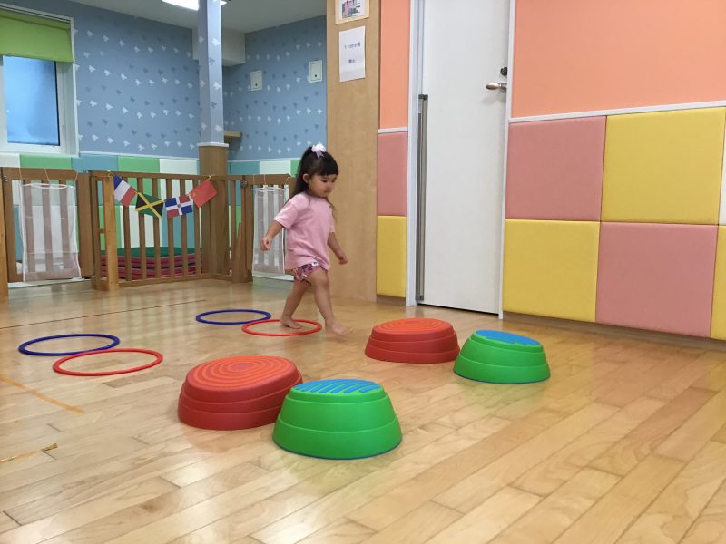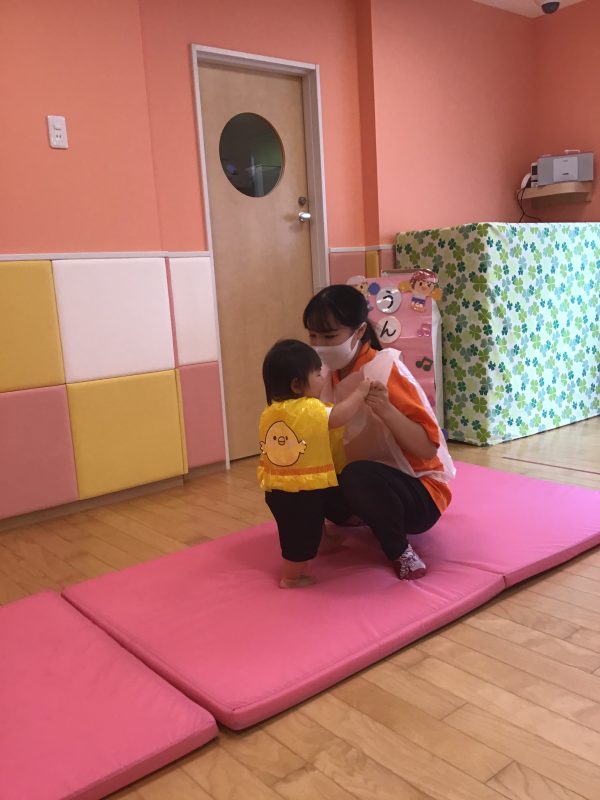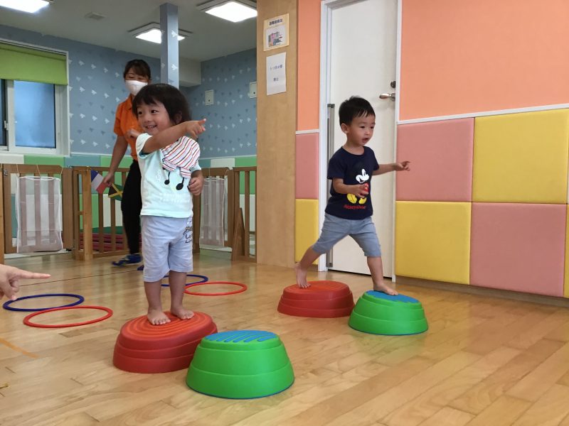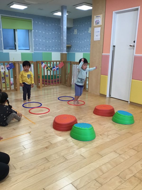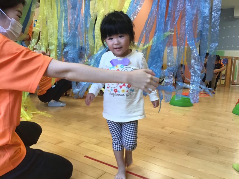 フラフープの中をジャンプして、平均台を渡り、ゴール前に待ち受けている障害物をくぐり、大好きな先生が待つゴールへGO‼️