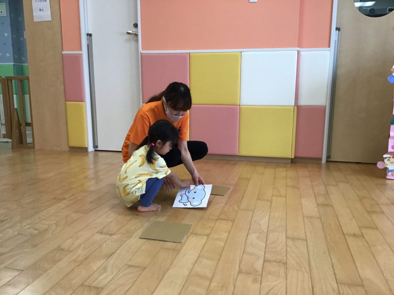 先生と一緒に好きなカードをめくってカードに描いてあるどうぶつになりきります✨