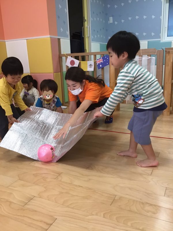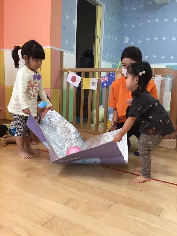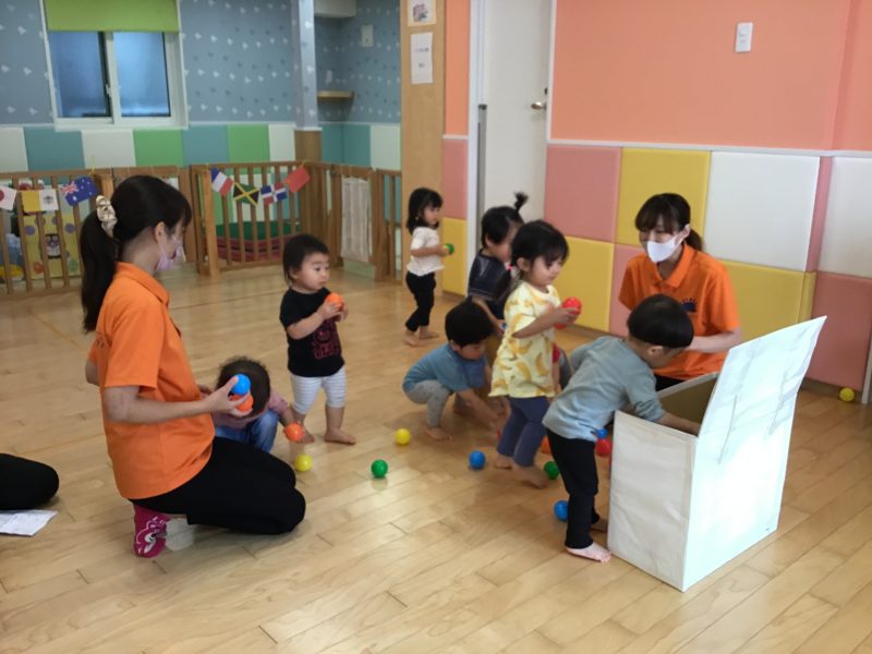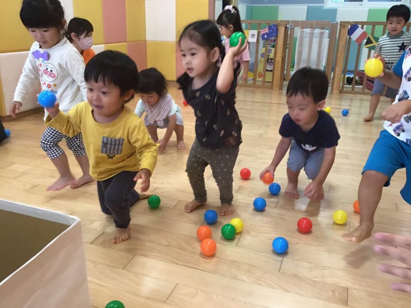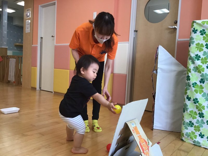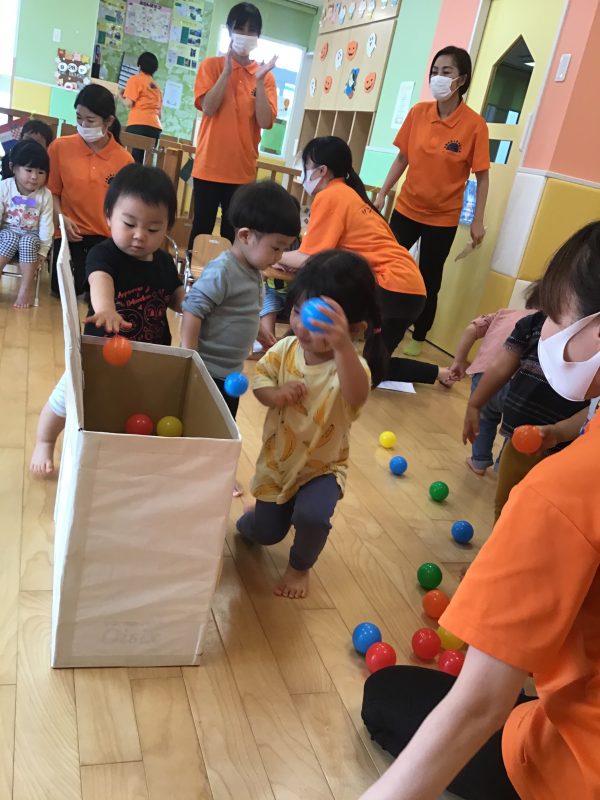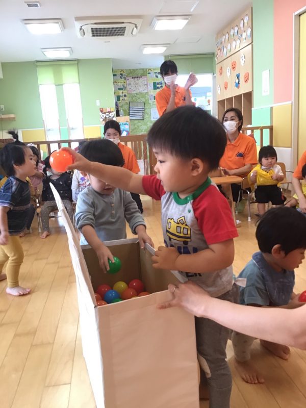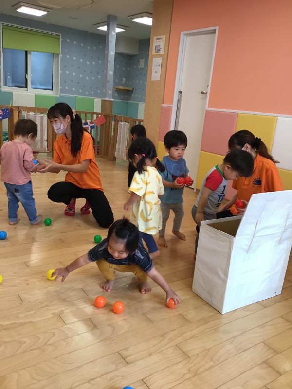 りんご組さんは、少し遠くからぽーん!と投げているお友達もいましたよ?