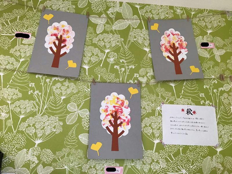 秋にちなんで、紅葉?した木々の製作をしました✨