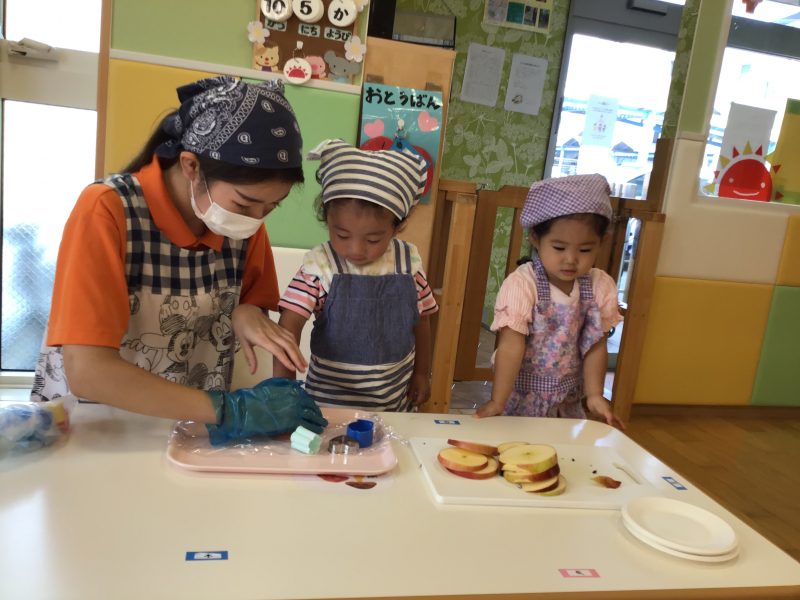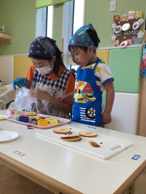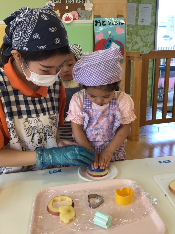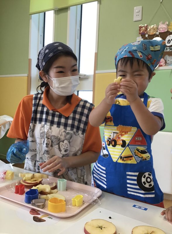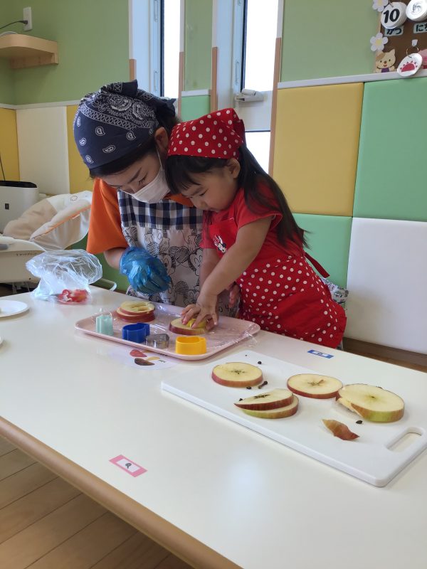 自分で型抜きをしたりんごは一段と美味しく感じ、子ども達もモリモリと食べていましたよ✨