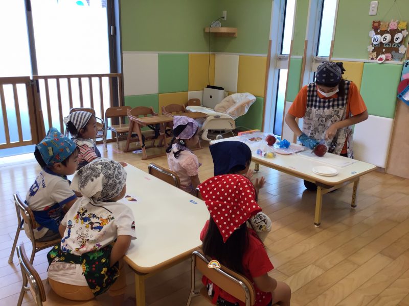 さて、今週はそんなりんご組さん?が食育活動?を行ったのでその様子と、先週行ったもも組さん?の製作活動?の様子をご紹介したいと思います?