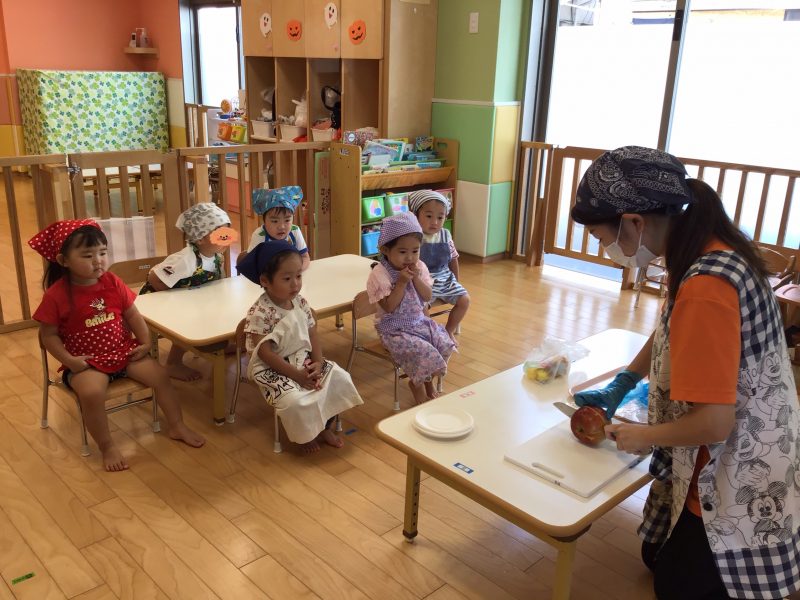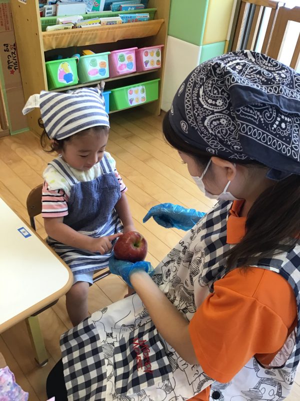 可愛らしい形のりんご?はあっという間に子ども達のお腹の中へ??