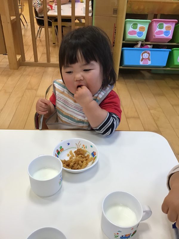 自分で盛り付けたおやつは一段と美味しく感じ、ペロリと完食していました?