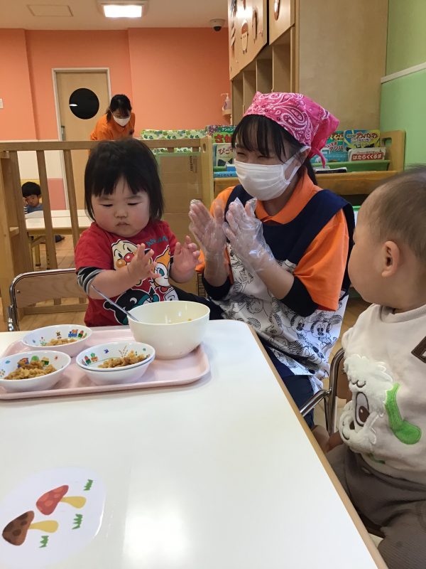 これからも、様々な食材に触れたり食べてみたりと、食育活動をお友達や先生と楽しく進めていきたいと思います❣️