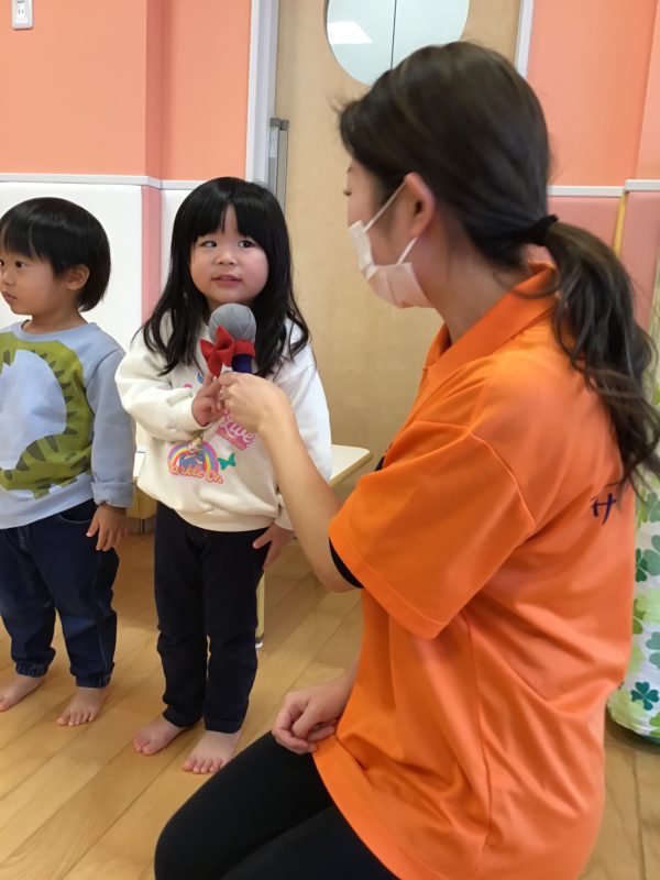 絵本が終わったらお誕生日のお友達に何歳になったのかと好きな食べ物をインタビューで聞いてみましたよ?