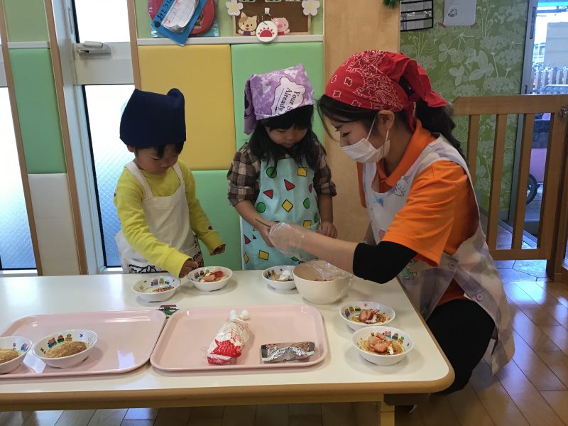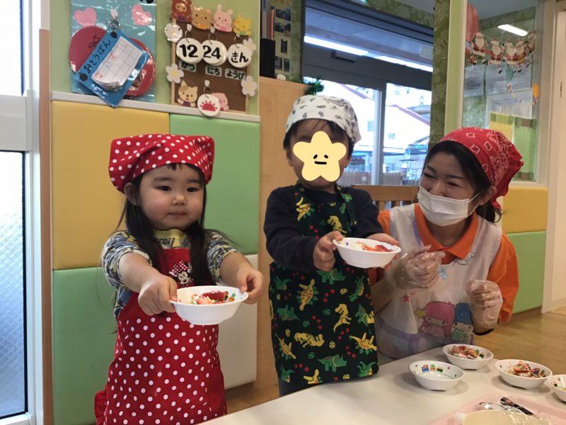 12月生まれのお誕生日会?とクリスマス会??とりんご組さんの食育活動????✨がありましたのでその様子をご紹介します??