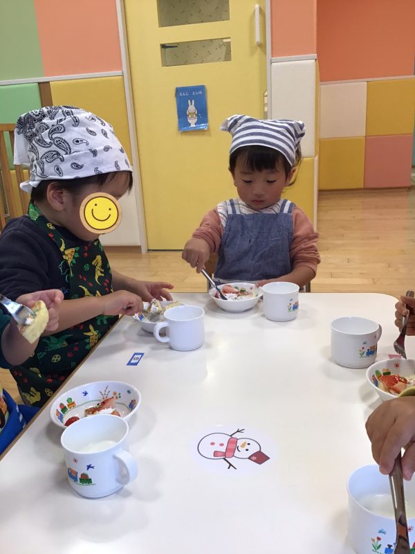 最後に、今年最後のりんご組さんの食育活動をご紹介します?✨