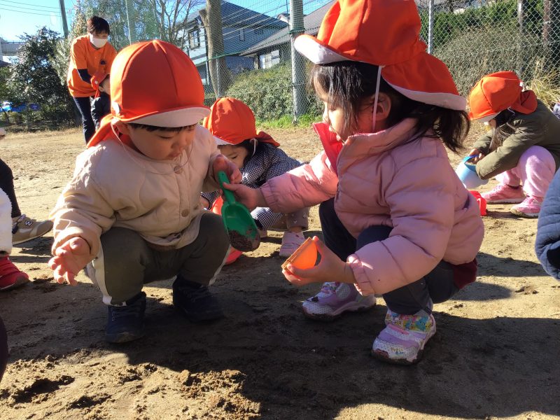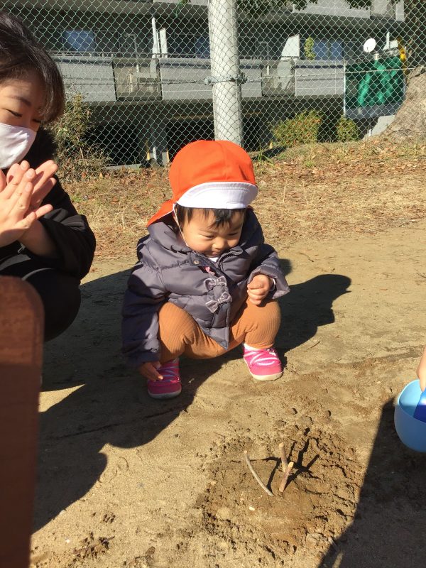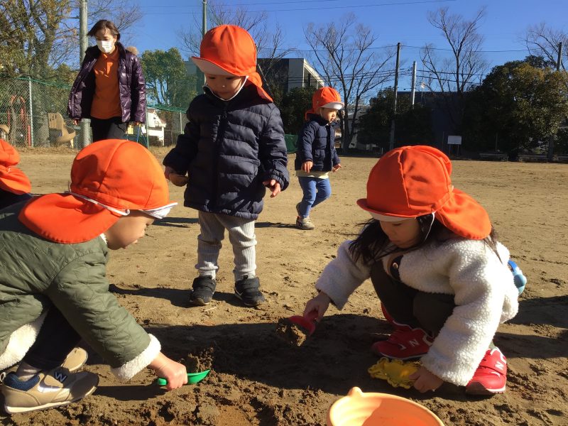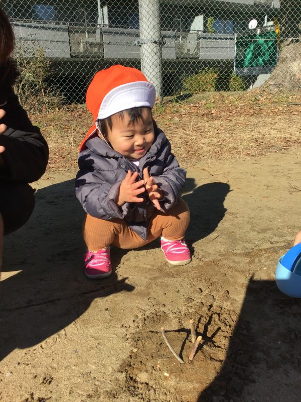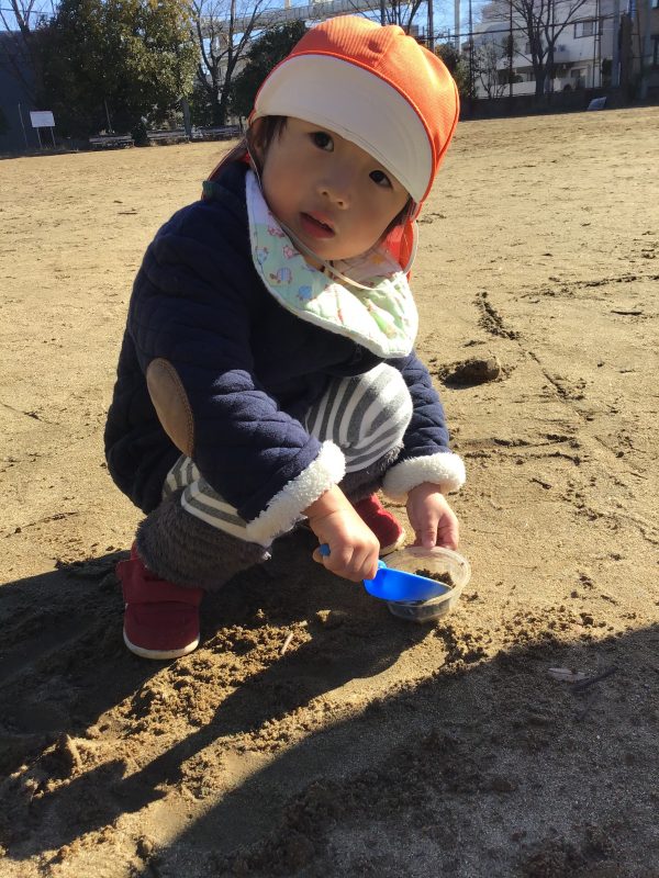 この日は近くの公園の広場に行き、砂遊びを楽しみました?