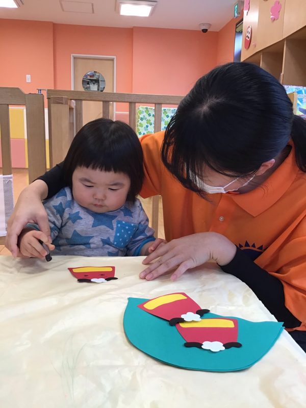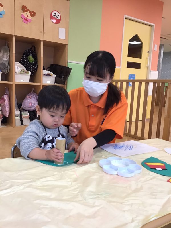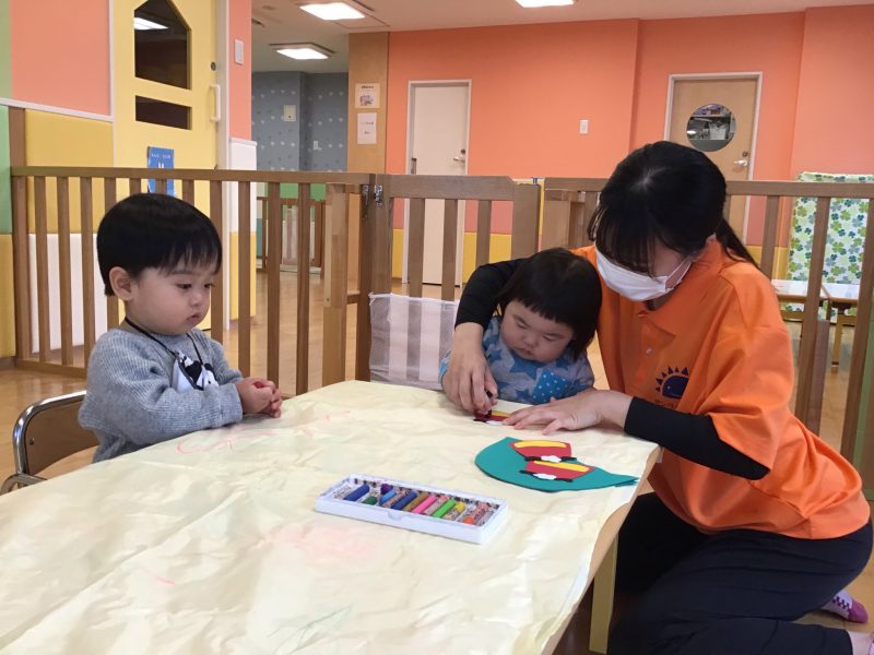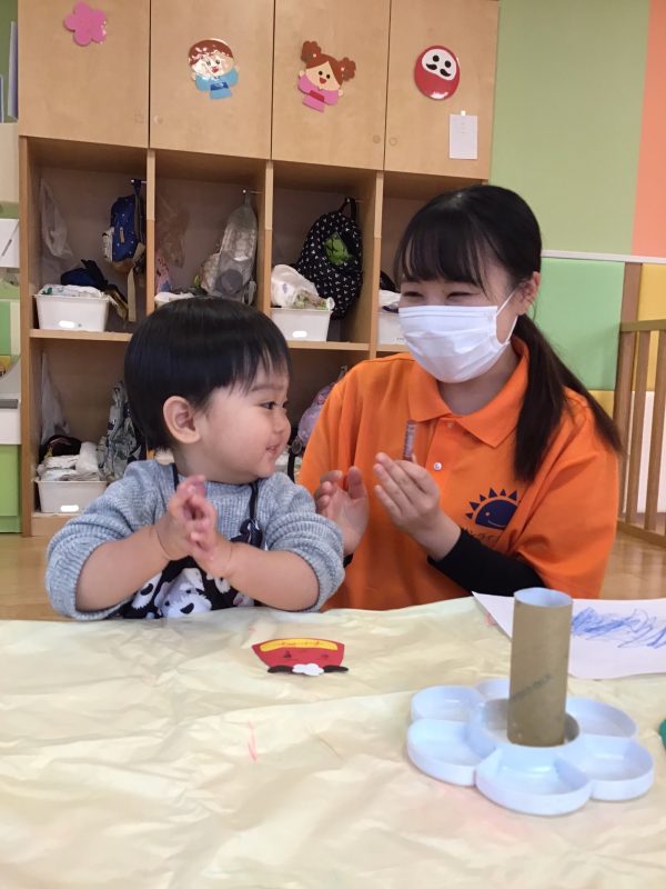さて、2021年最後のブログはもも組さん?が1月の製作活動を行ったのでそのご様子と、いちご組さん?りんご組さん?の戸外遊びの様子をお伝えしたいと思います?