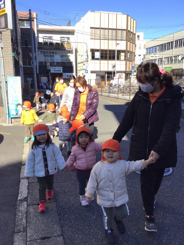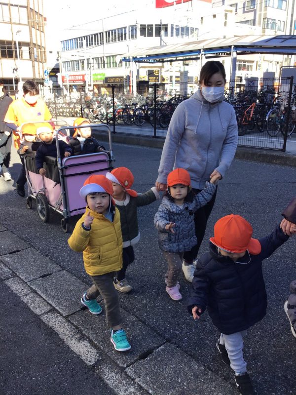 りんご組さん?といちご組さん?は、お散歩に行く前に必ず先生とお約束をしてから園を出ます❗️この日も「お友達とおててを離したらどうなっちゃうかな❓」「バギーの中では仲良くしようね?」などという先生のお話を頷きながら、しっかり聞く子ども達の姿が見られましたよ?