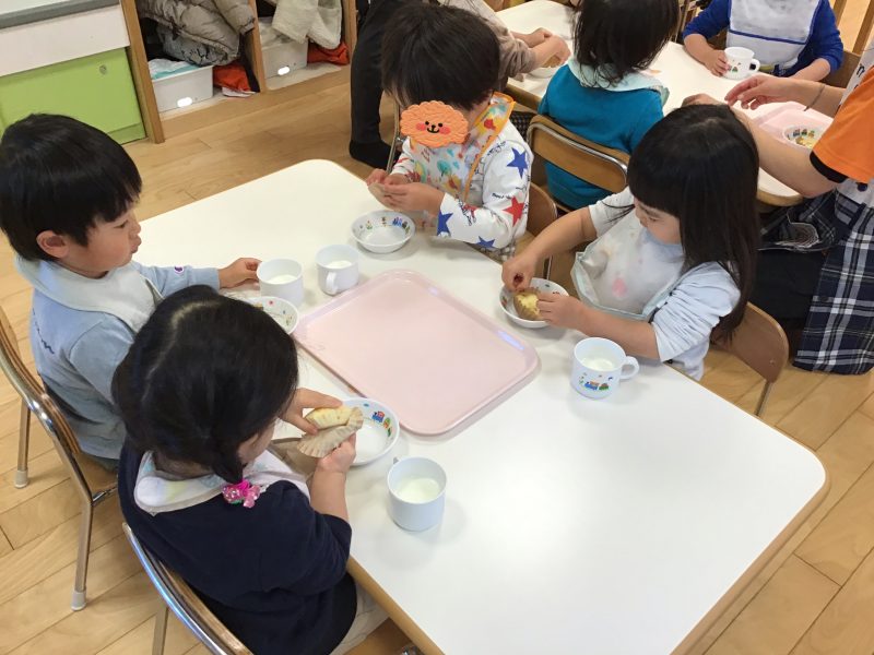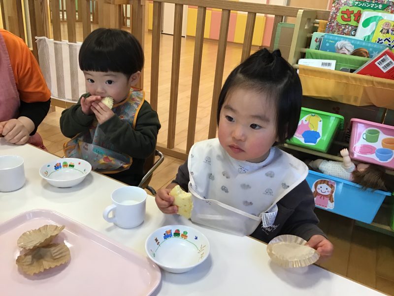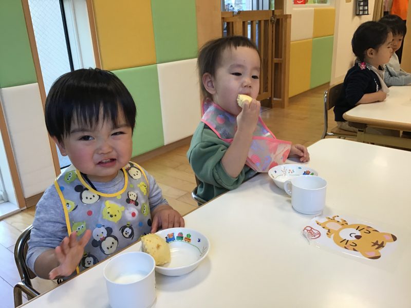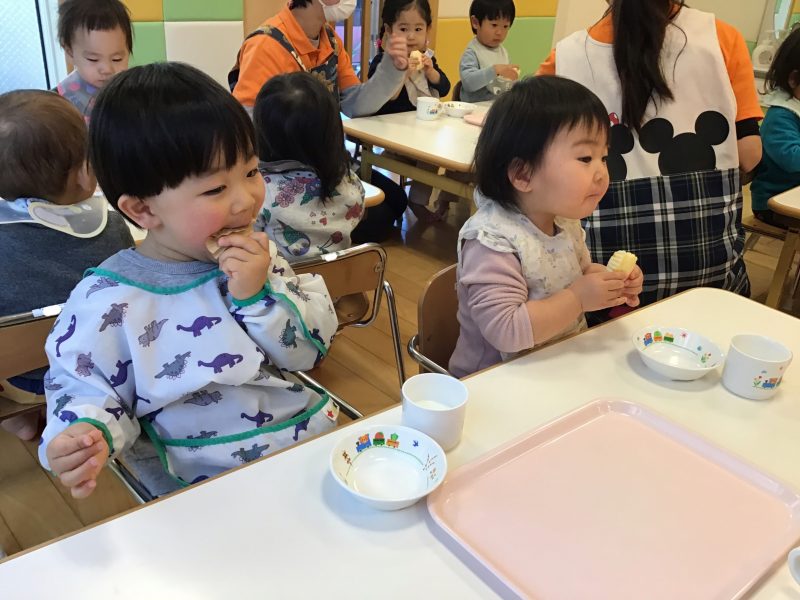 続いては、美味しそうにおやつを食べる子ども達のご様子をお伝えしたいと思います??