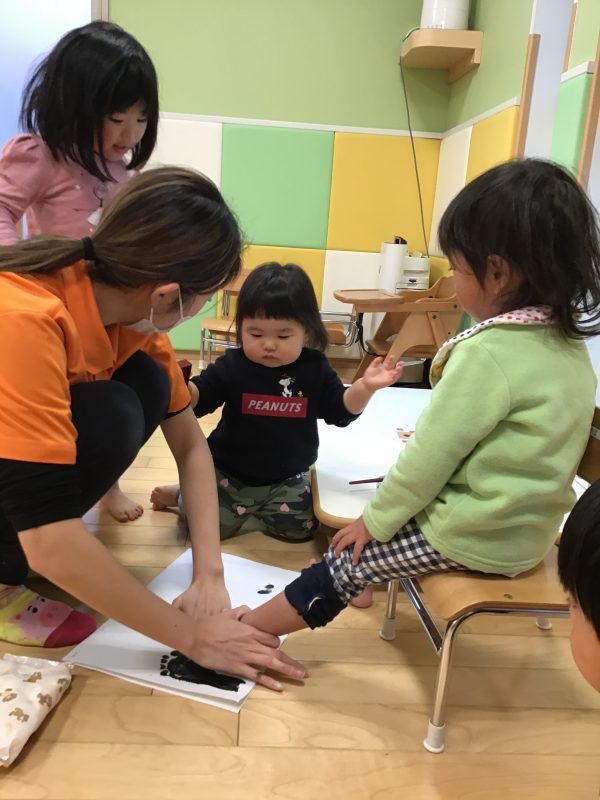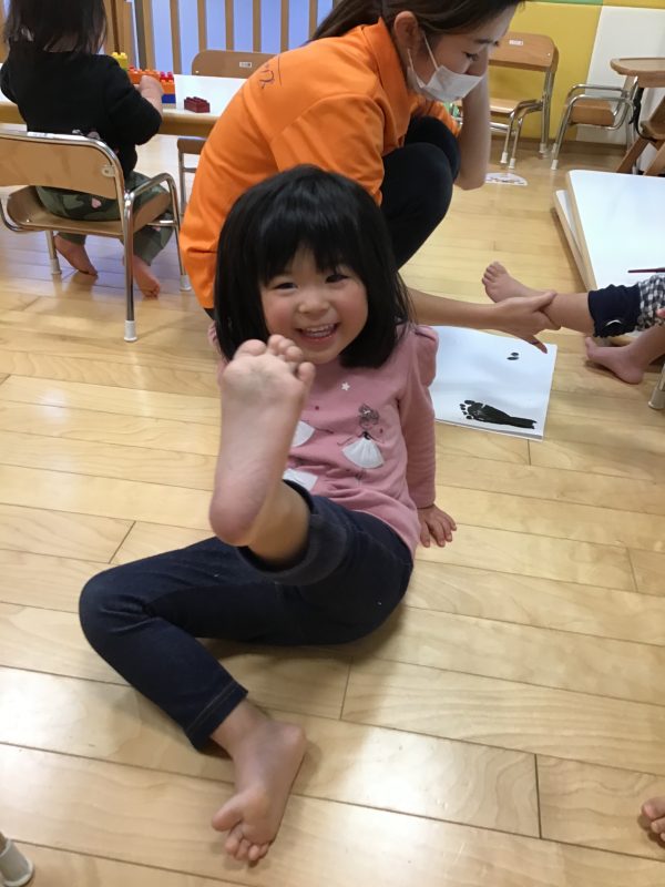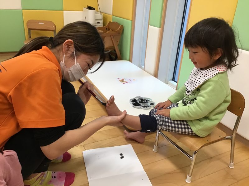 これまでに手形の製作は何度も行ってきましたが、足形?はりんご組になって初めてだったので、少し緊張気味な表情をしているお友達もいましたよ☺️