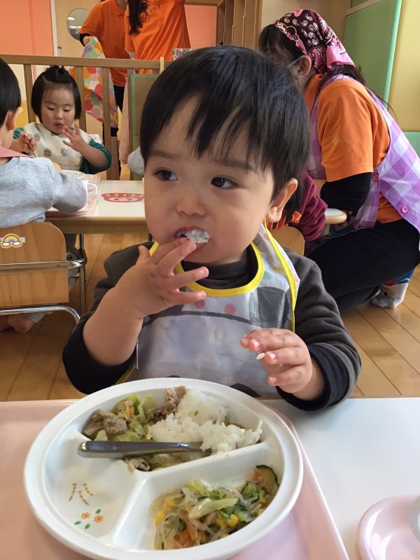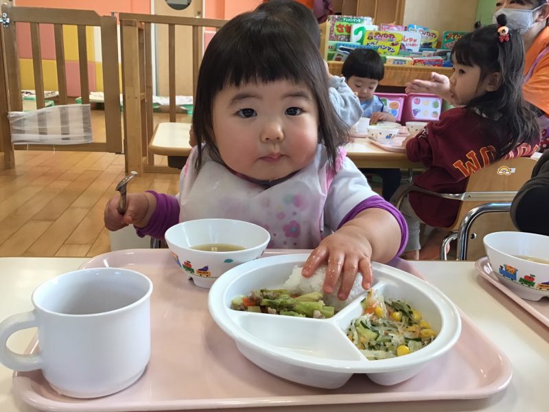 もも組さんは食欲旺盛なお友達が多く、いつも給食をペロリと食べ「ピカピカ〜」と言いながら空になったお皿を得意げに見せてくれます???